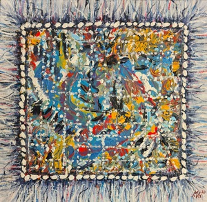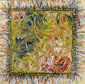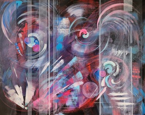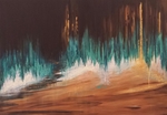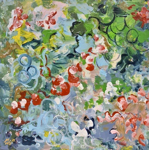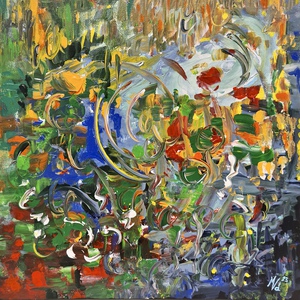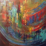 2016Intuïtief. Tijdens het schilderen het doek regelmatig gedraaid.