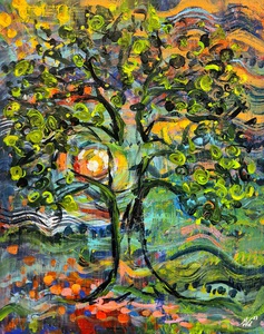 2015Bomen als drie-eenheid. Geinspireerd op de bomen bij mijn atelier, getooid in prachtige herfstkleuren.
