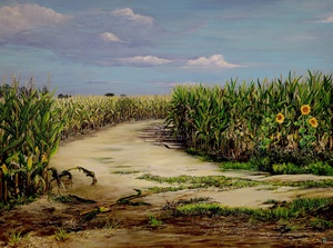 2023Geinspireerd op een maisveld in mijn omgeving. Het pad door het maisveld heen intrigeerde mij.