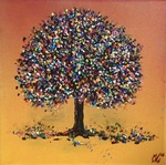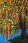 2017Gedotte treurwilg op 3D canvas. Dit was een werk in opdracht (met als verzoek een boom en bij voorkeur gedot).
